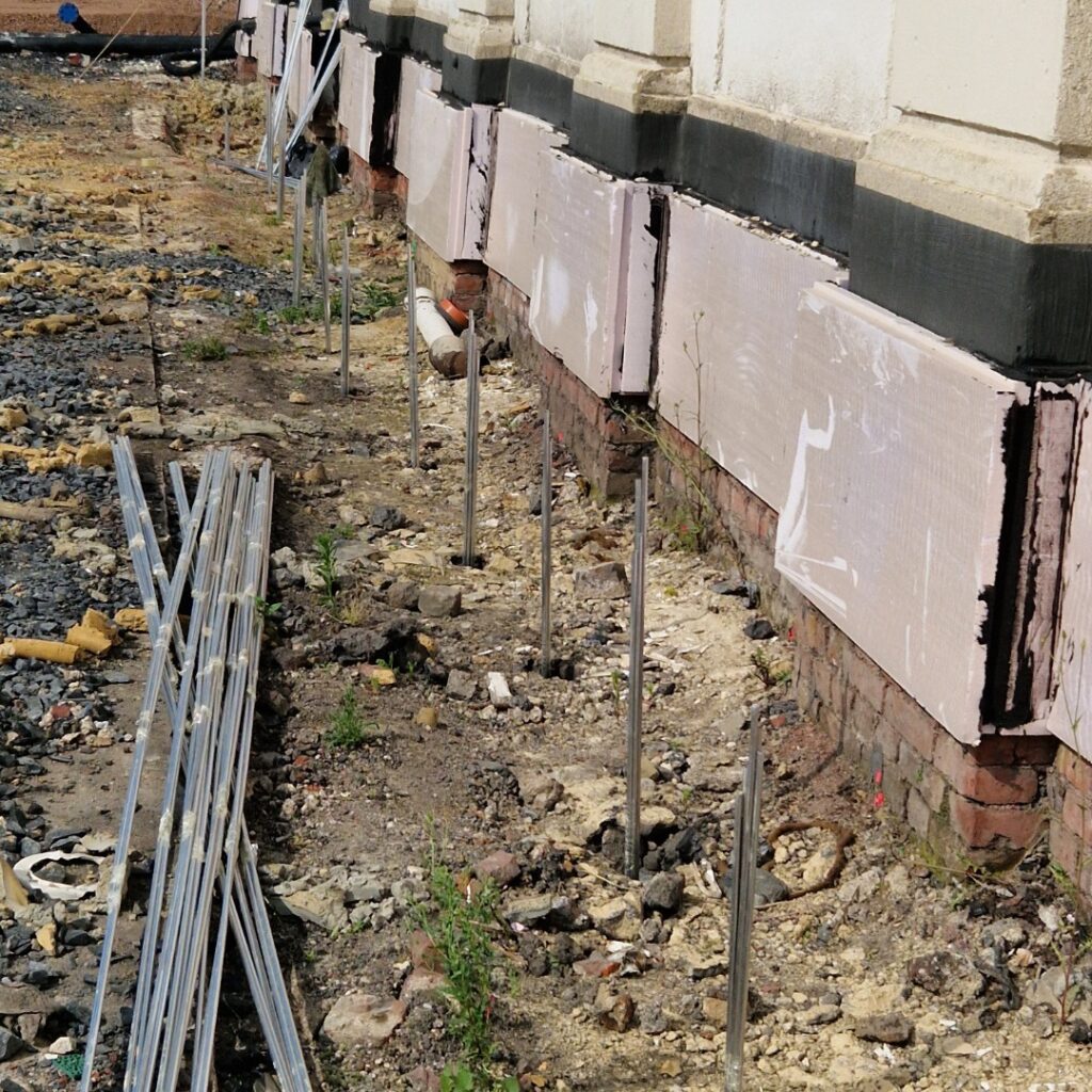 In Kombination mit der gezielten Baugrundverfestigung wird so sichergestellt, dass die Bauwerksverformungen nicht nur gestoppt, sondern die Ursachen – insbesondere im Hinblick auf die unzureichende Gründungstiefe und die Frostempfindlichkeit des Untergrundes – fachgerecht neutralisiert werden. Das von GEOSEC patentierte 4D-Live ERT dient hierbei als Kontrollinstrument, um die Wiederherstellung der Standsicherheit im hochsensiblen Umfeld ehemaliger Industrieflächen und denkmalgeschützter Gebäude dauerhaft zu dokumentieren und den Baugrund kontrolliert zu verfestigen.