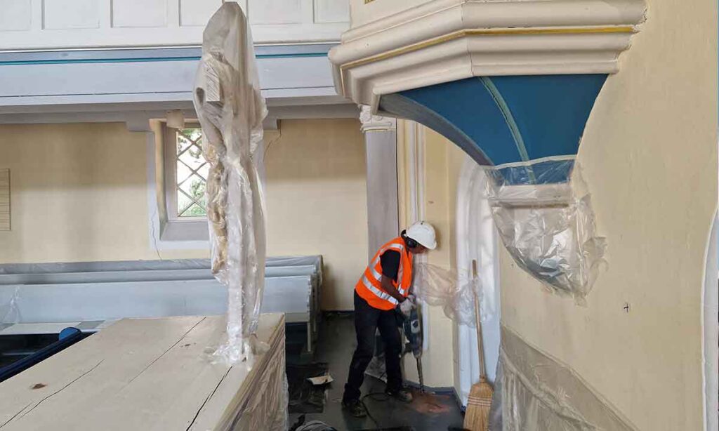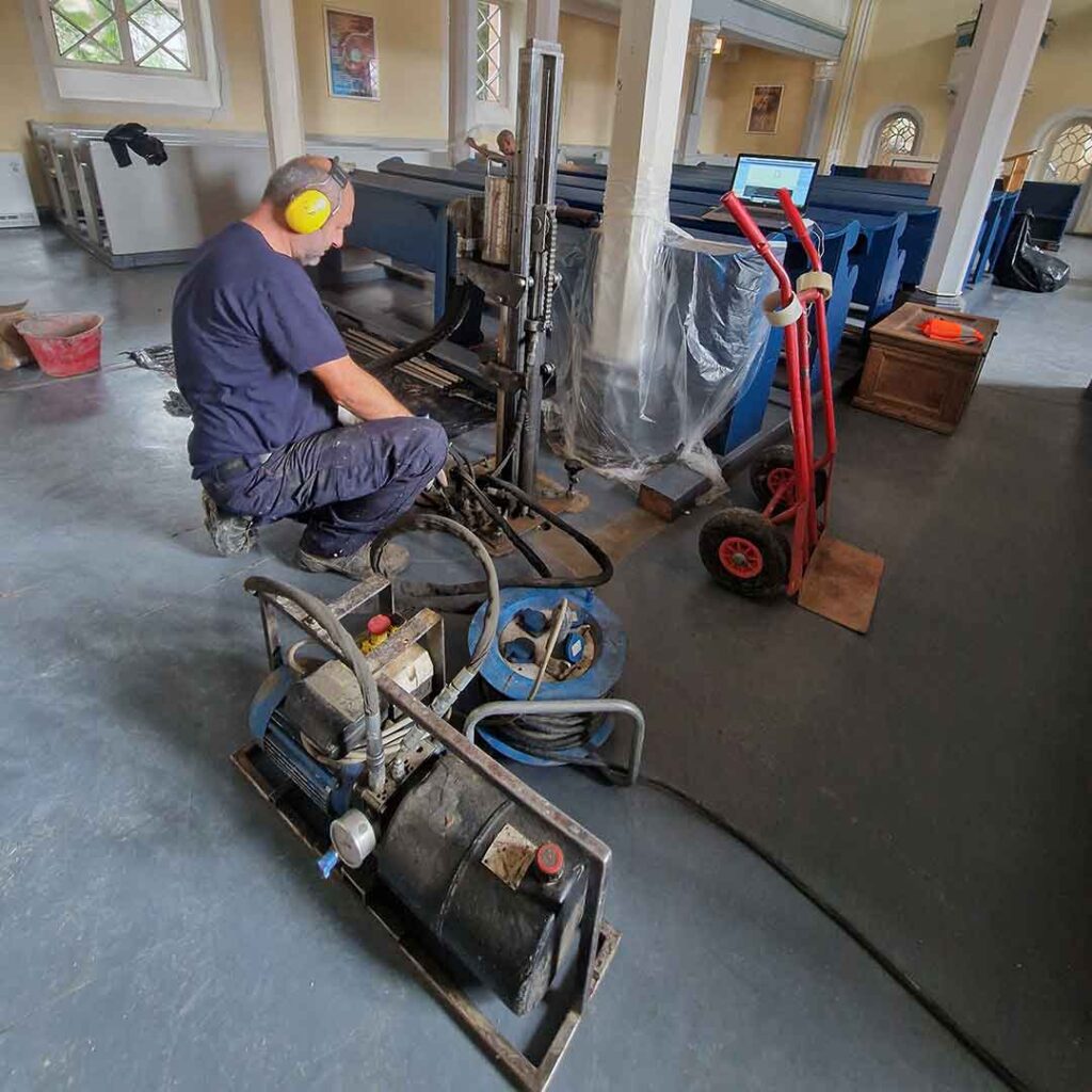 Einblicke in die Baugrundverfestigung der denkmalgeschützten SAALKIRCHE in NIEDERWALD