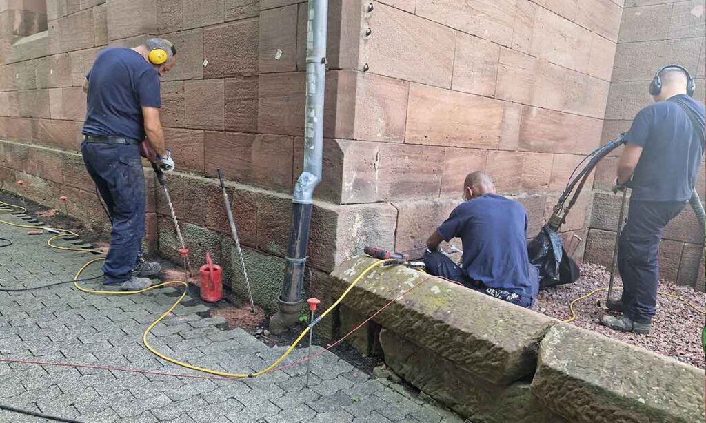 Das Harz dehnt sich im Boden mit enormer Kraft aus, füllt die vorhandenen Hohlräume und verdrängt überschüssiges Wasser. Dadurch wird die lockere Auffüllung verdichtet und der wasserempfindliche Schluff versiegelt. Das Ergebnis ist eine solide, wasserresistente Basis, die die Kompressibilität des Bodens minimiert. Der große Vorteil dieses Verfahrens ist die Effizienz und minimal-Invasivität: Es ist keine aufwendige Freilegung des Fundaments (Unterfangung) nötig, wodurch weitere Erschütterungen für die Kirche vermieden werden. Außerdem kann anhand der geotechnischen Messungen eine deutliche Baugrundverbesserung nachgewiesen werden.