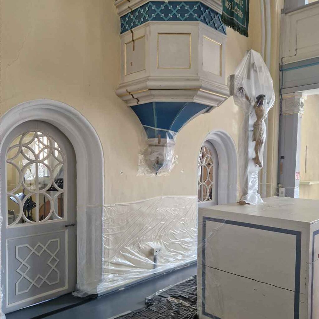 - Gebäudetyp: denkmalgeschützte Saalkirche aus dem 19. Jahrhundert